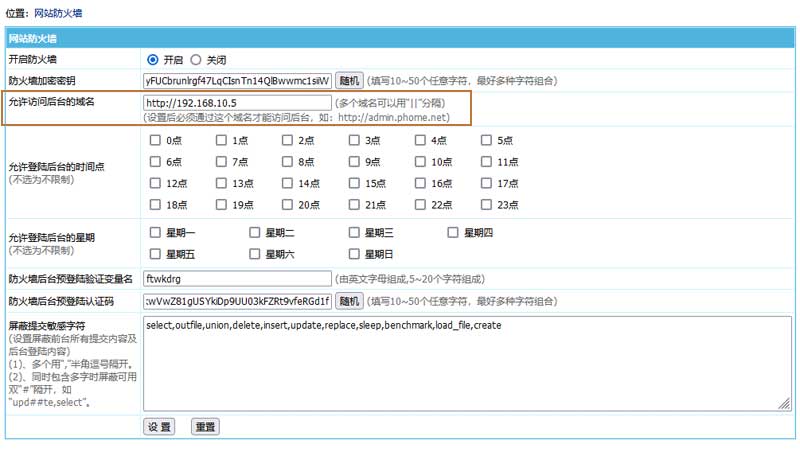 1、后台>系统>系统设置>网站防火墙:
