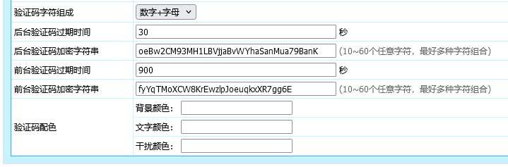 设置后台验证码相关。(建议把验证码过期时间改短,时间越短效果越好;加密字符串建议定期修改。)