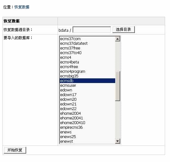 | 第一种方法:使用ECMS恢复功能恢复数据库数据 |