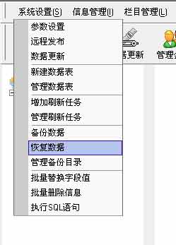 | 2、登陆后台-》“系统设置”-》“恢复数据”,如下图: |