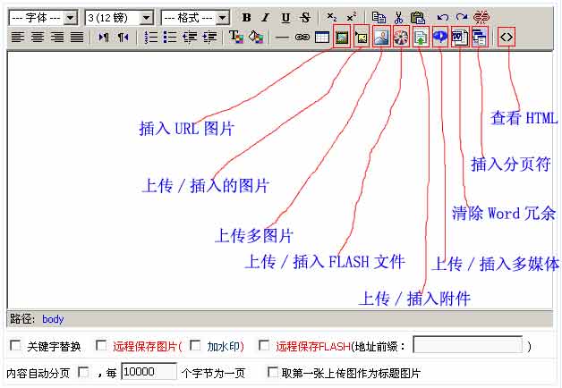 只要字段名为“newstext”录入表单均有以下的编辑器。