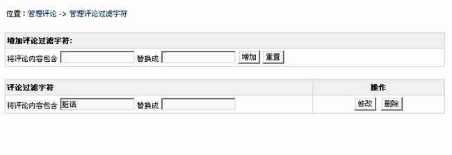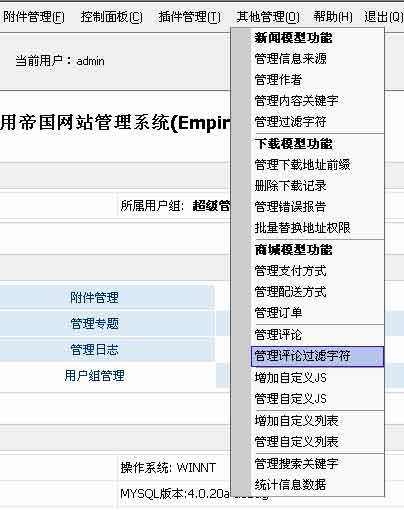 1、登陆后台-》“其他管理”-》“ 管理评论过滤字符”,如下图: