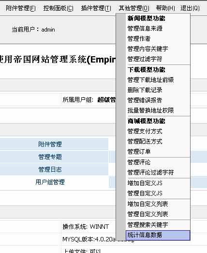 1、登陆后台-》点击“其他管理”菜单-》点击“统计信息数据”,如下图: