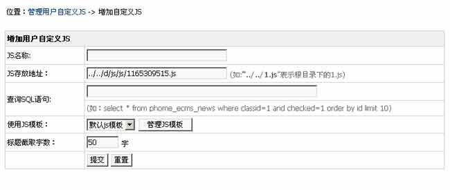生成的JS文件存放地址,从后台目录算起,如:“../../1.js”表示生成到根目下的1.js文件 |