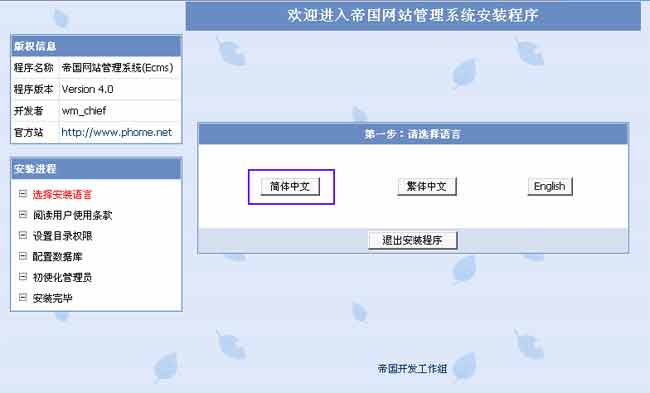 | 下面是《帝国网站管理系统》安装步骤: |