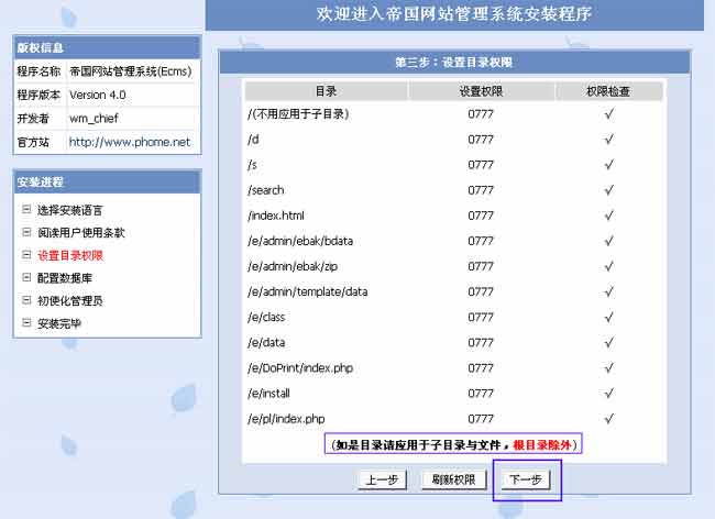 | 4、设置目录权限。 |