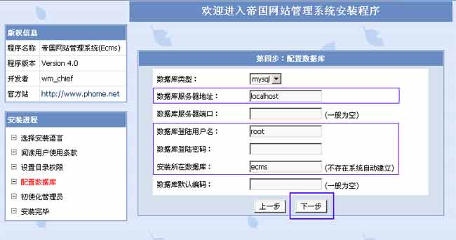 | 安装《帝国网站管理系统》: |