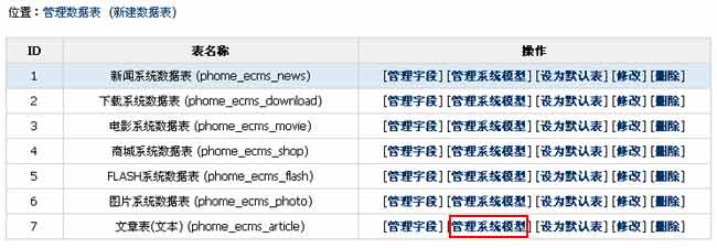 1、登陆后台-》“系统设置”-》“管理数据表”,然后点击“