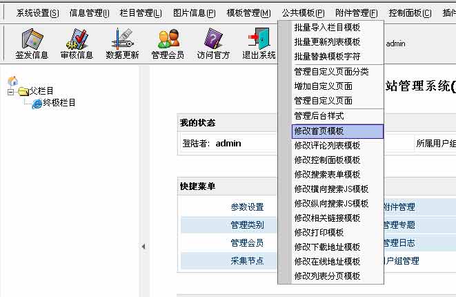 1、登陆后台-》“公共模板管理”-》“修改首页模板”