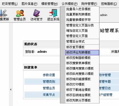 1、登陆后台-》“公共模板”-》“修改评论列表模板”,如下图:
