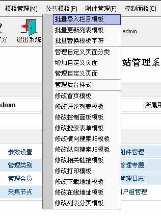 | 2、登陆后台开始导入栏目模板操作。“公共模板”-》“批量导入栏目模板”,如下图: |