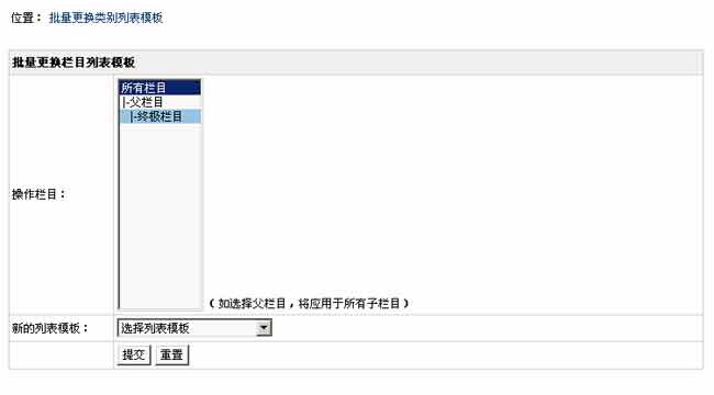 选择要替换的栏目,如果是父栏目会应用于所有子栏目