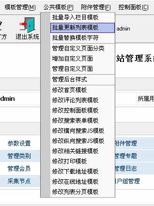 1、登陆后台-》“公共模板”-》“批量更新列表模板”,如下图
