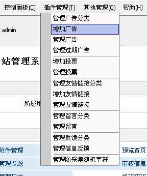 | 1、登陆后台-》“插件管理”-》“增加广告”或“管理广告”,如下图: | ||||||||||||||||||||||