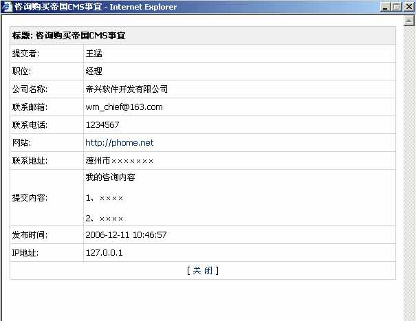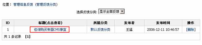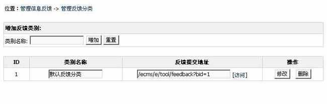 | 说明:一个类别为一个信息反馈表单,信息反馈前台访问地址:点击“[访问]”即可查看。 |