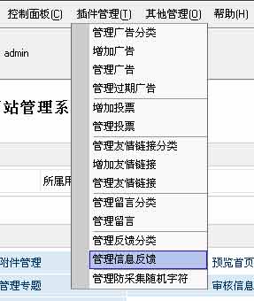 | 1、登陆后台-》“插件管理”-》“管理信息反馈”,如下图: |