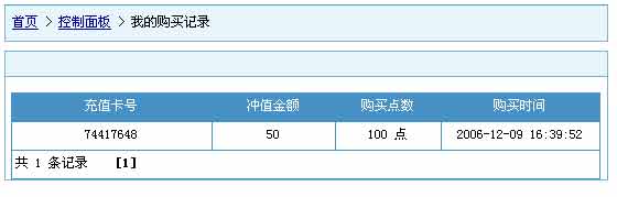 2、此点卡充值成功后,此点卡号码会自动删除,并且在“我的购买记录”会看到刚充值的记录。
