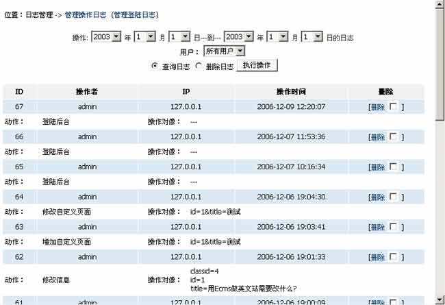 2、进入“管理操作日志”界面。如下图:
