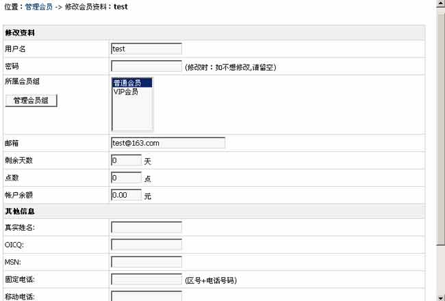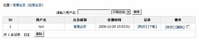 | 说明:如果整合其它会员系统,这边管理的将是被整合的会员表记录,并且如果会员级别为空,这是正常的,是因为这个会员未登陆过ECMS. |
