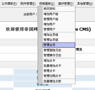 | 1、登陆后台-》“控制面板”-》“管理会员”,如下图: |