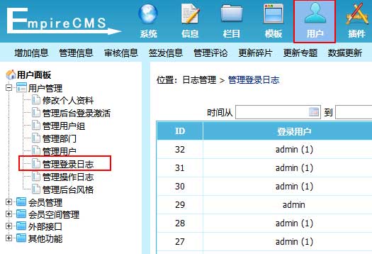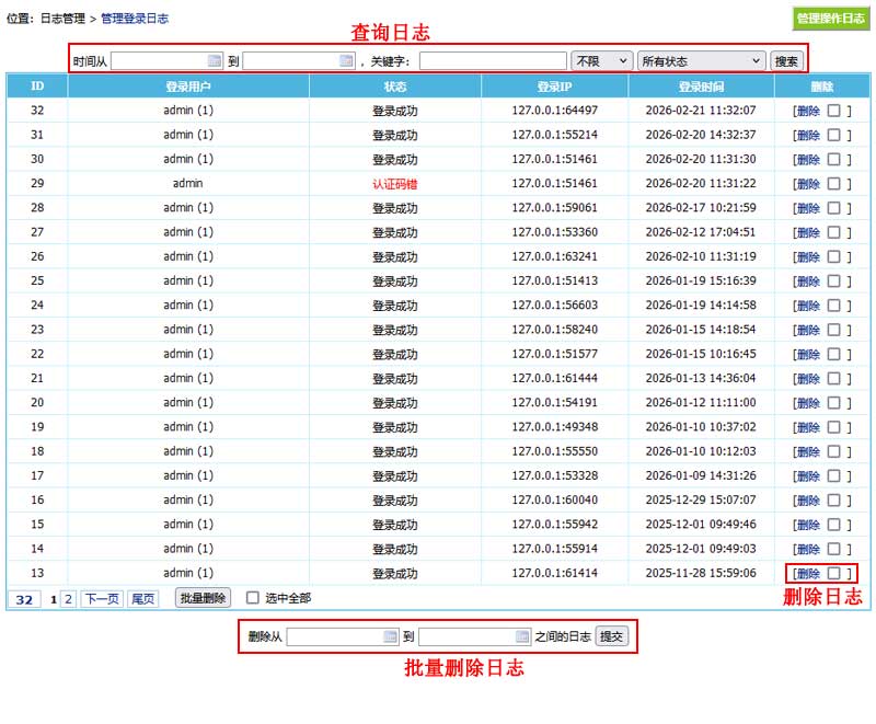 本功能为对后台管理员的登录成功与失败记录进行管理。