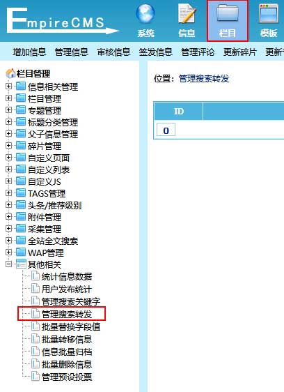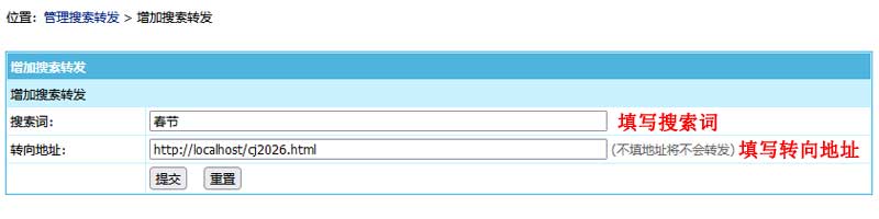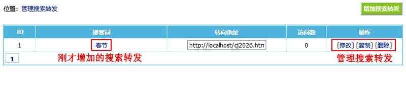 2、进入管理搜索转发界面,点击“增加搜索转发”按钮进入增加搜索转发界面: