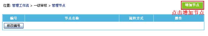 | 4、进入工作流节点管理页面,然后点击“增加节点”按钮,进入增加工作流节点界面: | ||||||||||||||||||
