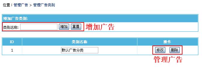 | 2、进入管理广告分类界面: |