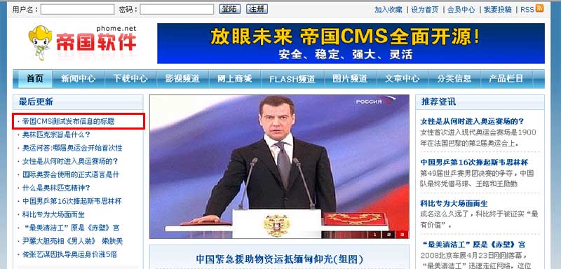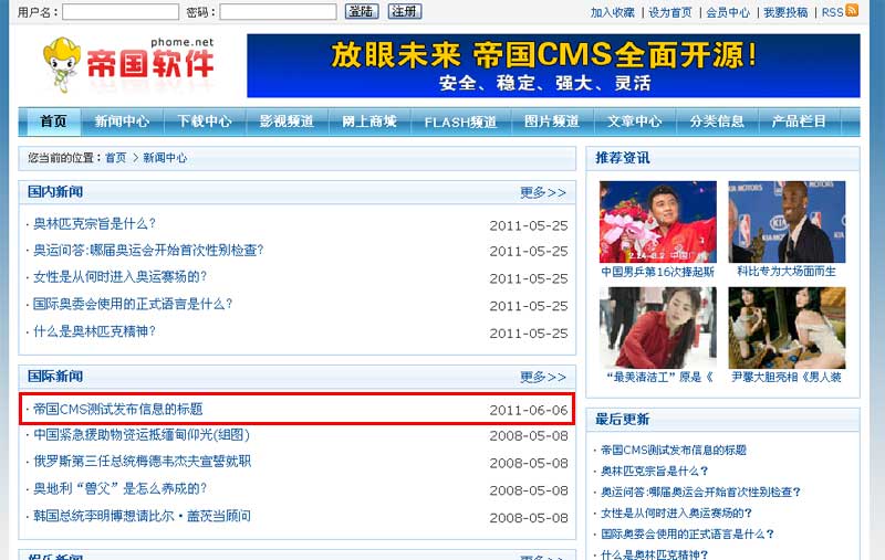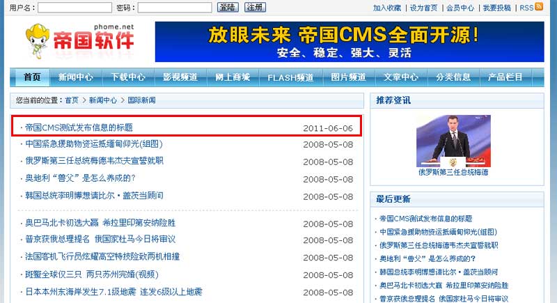 2、点击“提交”按钮后,即可在前台看到我们刚才增加的信息: |