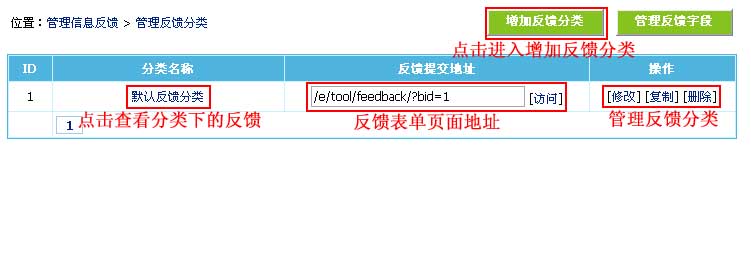 | 2、进入管理反馈分类界面: | ||||||||||||||