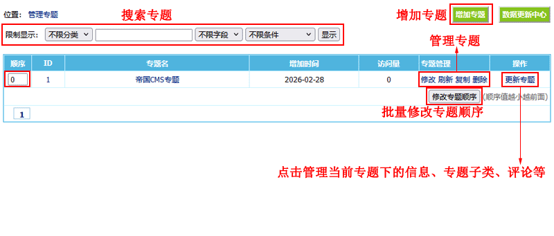 | 专题管理 |