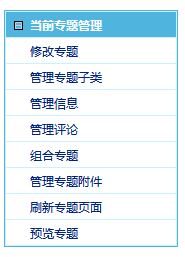 更新专题:点击管理当前专题下的信息、专题子类、组合专题、评论、附件等。 |