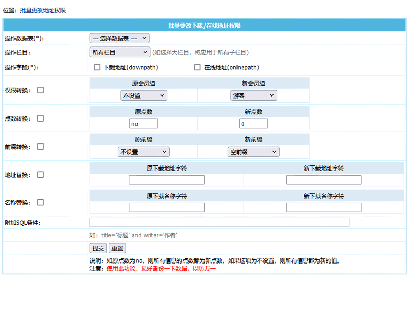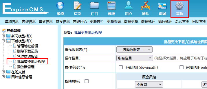 ”子菜单,进入批量替换地址权限界面: