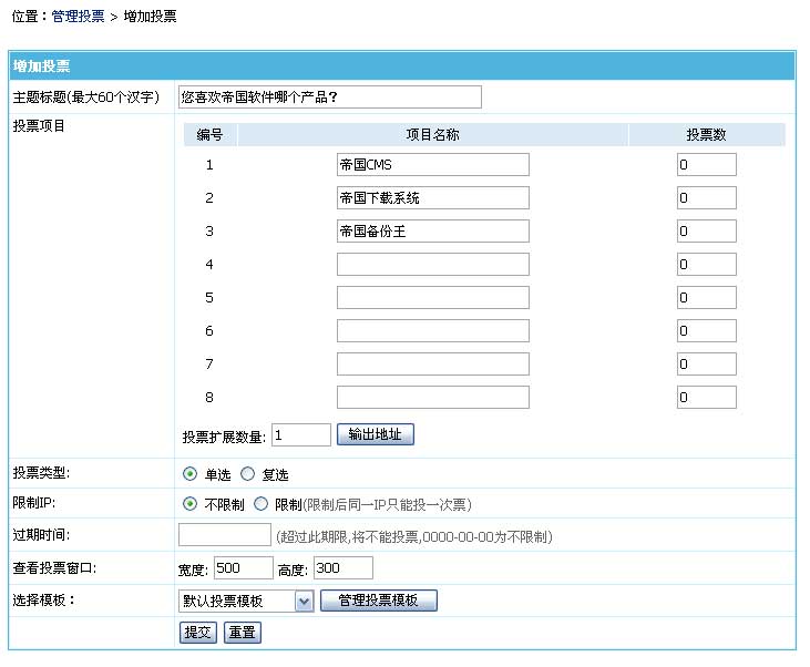 | 2、进入增加投票界面,如下图: | ||||||||||||||||