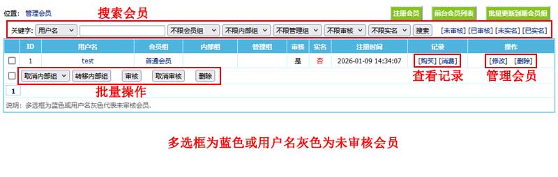 设置会员是否审核,未审核账号不能登录前台。 |