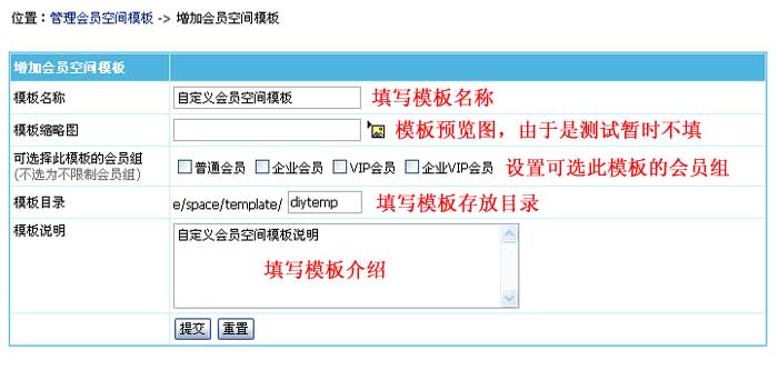 | 三、增加会员空间模板: | ||||||||||