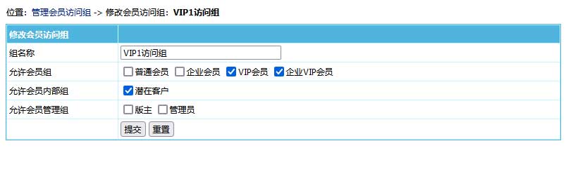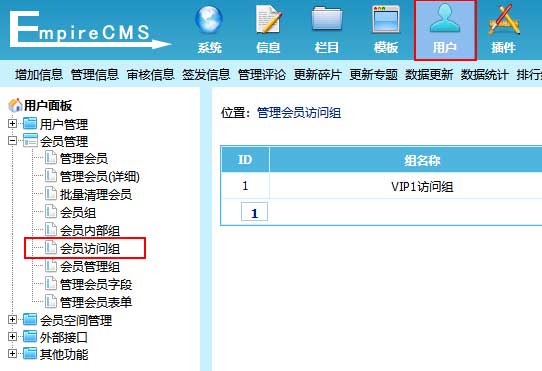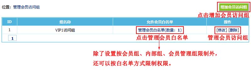 会员访问组管理:对前台会员的访问或下载权限进行管理