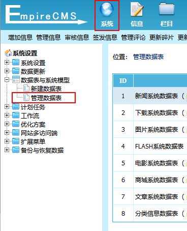 帝国CMS管理副表分表说明