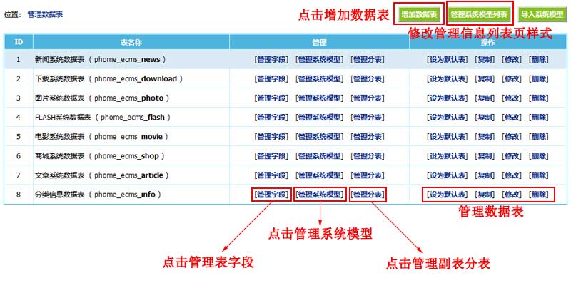 帝国CMS管理数据表说明