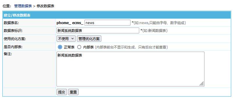 填写数据表名,只能由字母、数字组成。比如:news