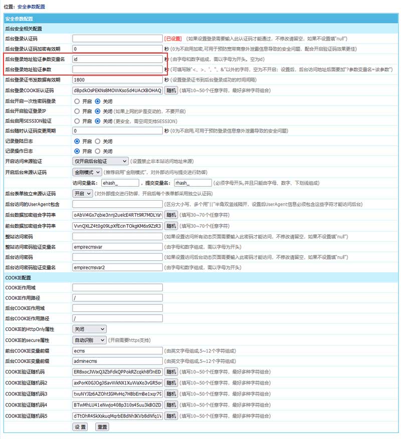 设置“后台登录地址验证参数变量名”和“后台登录地址验证参数”。比如设置为:参数变量名设置为“