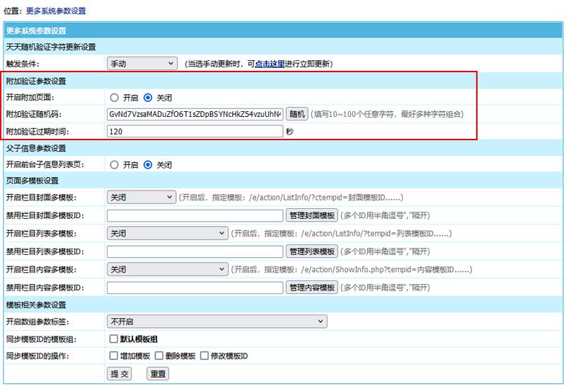 附加页面访问加密验证内容,建议定期修改,可以点击随机后在不同位置插入几个字母或特殊字符。