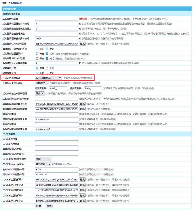 支持设置访问来源验证(设置禁止非本站访问地址来源)。设置有以下两种方法: