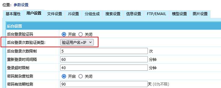 设置“后台登录次数验证类型”。