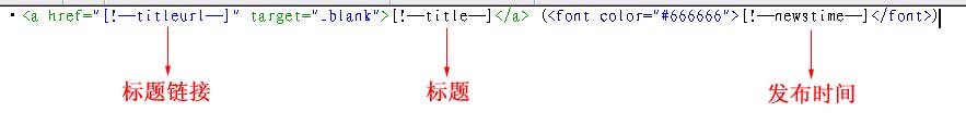 | 3、制作列表内容模板:即内容变量<!--list.var1-->所显示的内容。代表每条信息的显示样式。 | ||||