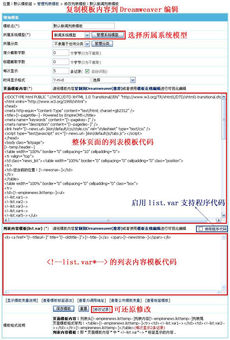 | 3、帝国CMS功能解密之:模板list.var支持程序代码 |