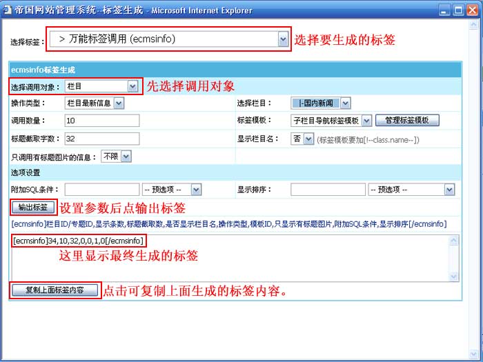 2、标签参数中先选择调用对象,再设置其他参数;