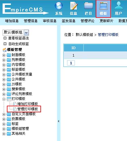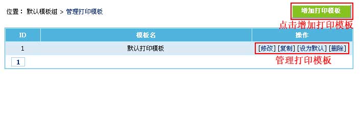 | 1、登录后台,单击“模板”菜单,选择“管理打印模板”子菜单,进入管理打印模板界面: | |||||||||||||||||||||||||||