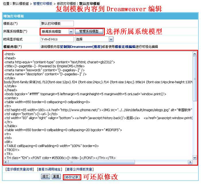 | 内容模板加打印页面链接:[!--news.url--]e/DoPrint/?classid=[!--classid--]&id=[!--id--] |
