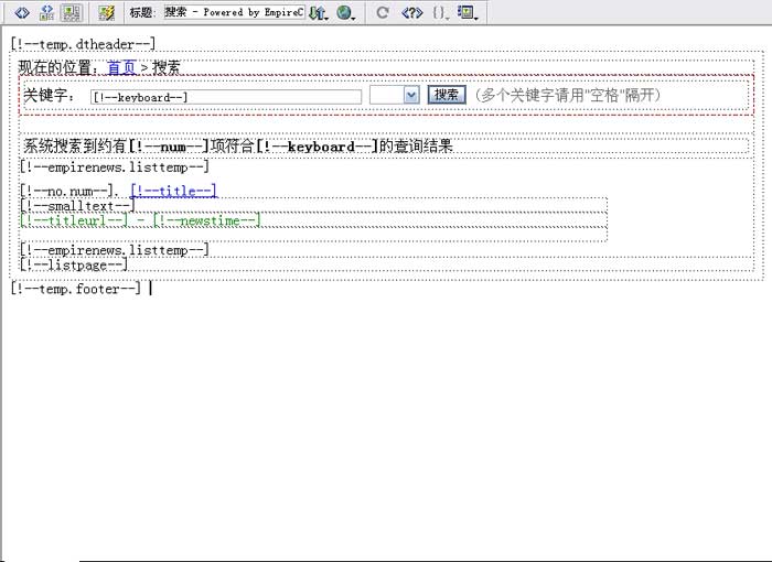 | 3、把全站搜索模板复制到Dreamweaver后可进行可视化编辑,如下图: | ||||